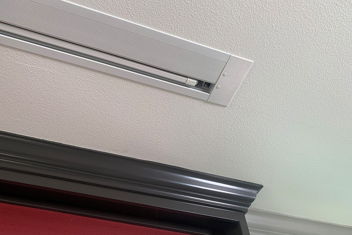 Tensione = tensione! Gli schermi di tensione o Tab Tension sono stati sviluppati per incorporare la perfetta posizione in pianta delle pareti a telaio nelle pareti motorizzate.