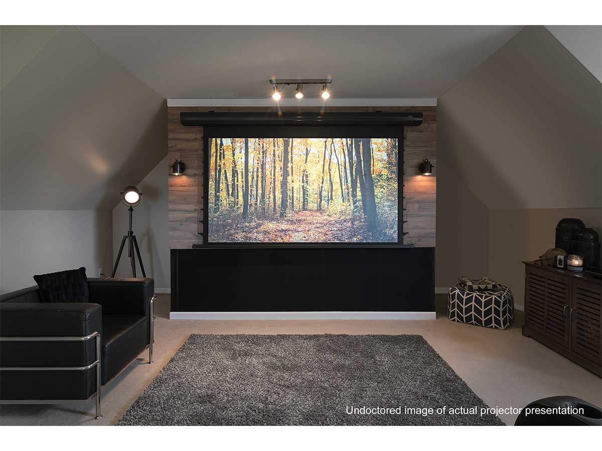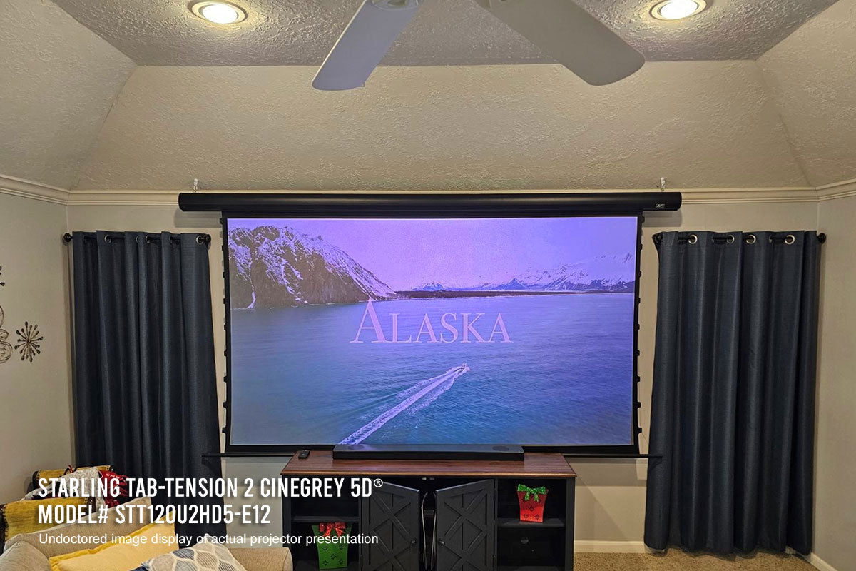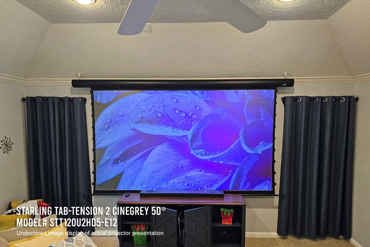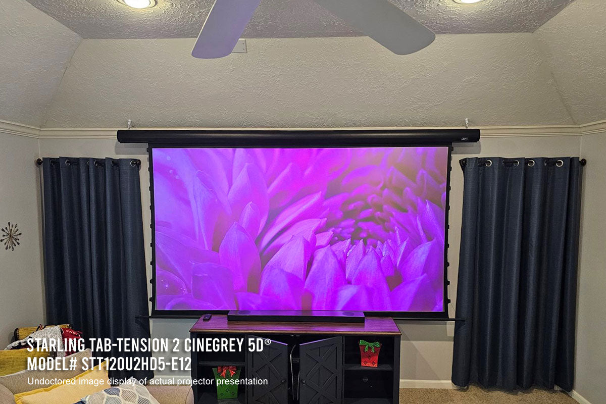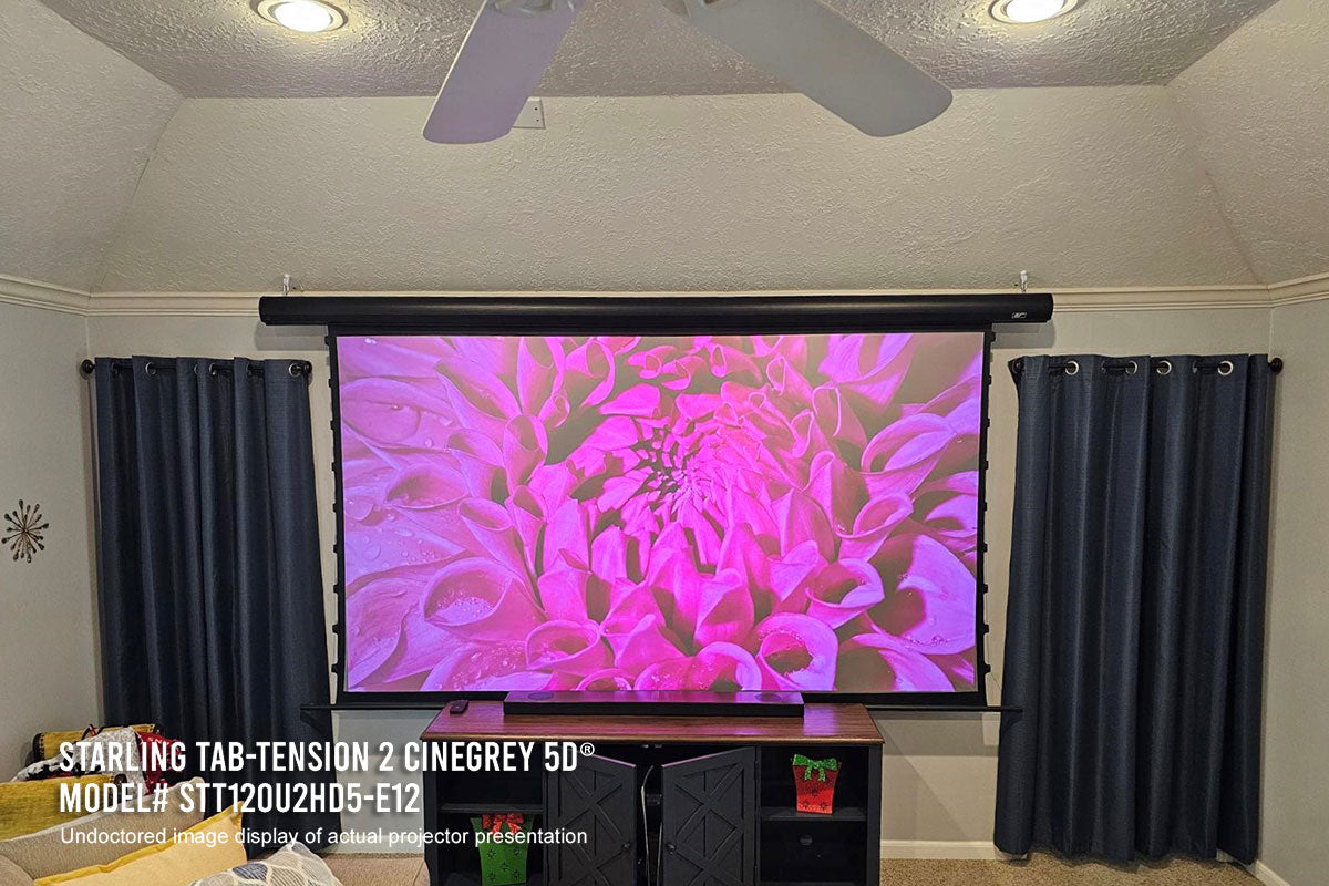 The CineGrey 5D® is an angular reflective front projection material designed to reject ambient light while maintaining superb picture quality. The CineGrey 5D® is the perfect solution for rooms that have little or no control over incidental light. This means that it’s an ideal fit for family rooms as well as lecture halls, boardrooms, sports bars, training facilities, and other business environments. In addition, the CineGrey 5D® increases projector brightness 1.5 times the amount. This is perfect for low lumens ouput projectors!
