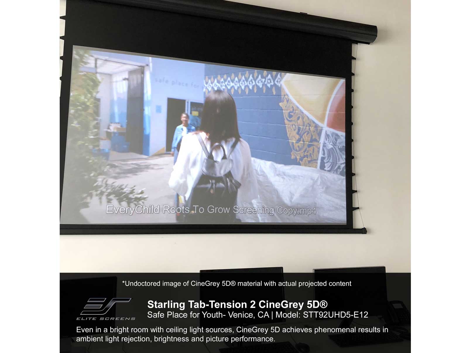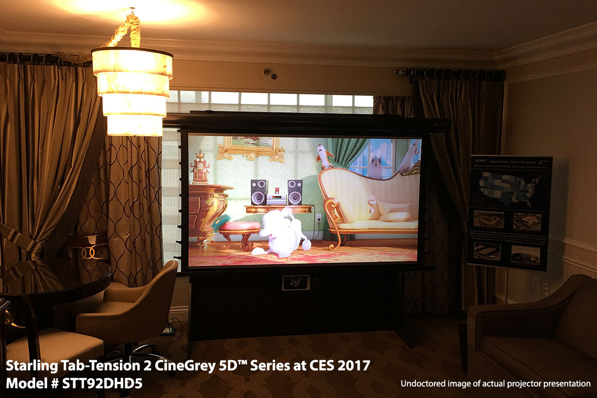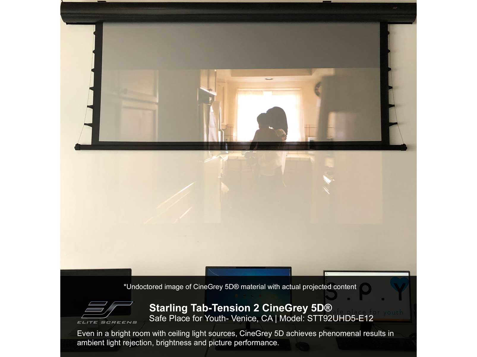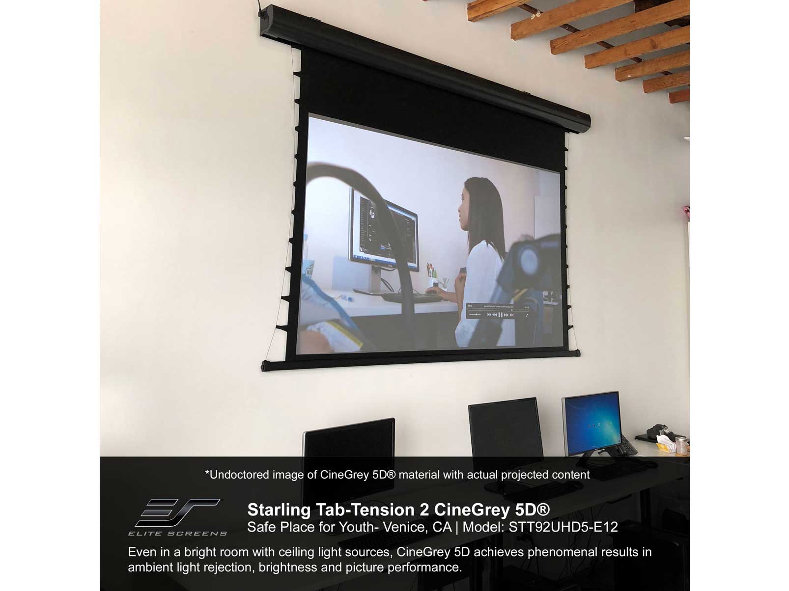 The CineGrey 5D® is an angular reflective front projection material designed to reject ambient light while maintaining superb picture quality. The CineGrey 5D® is the perfect solution for rooms that have little or no control over incidental light. This means that it’s an ideal fit for family rooms as well as lecture halls, boardrooms, sports bars, training facilities, and other business environments. In addition, the CineGrey 5D® increases projector brightness 1.5 times the amount. This is perfect for low lumens ouput projectors!