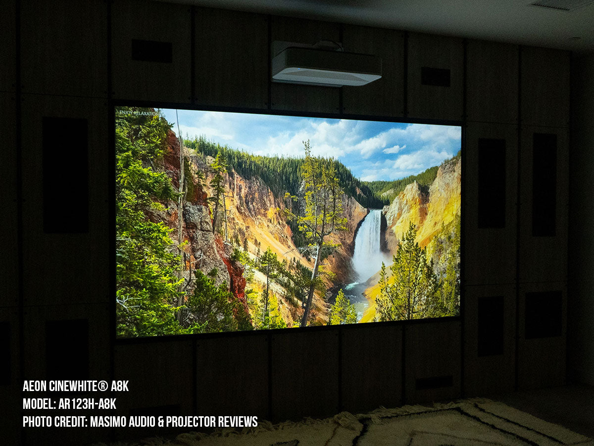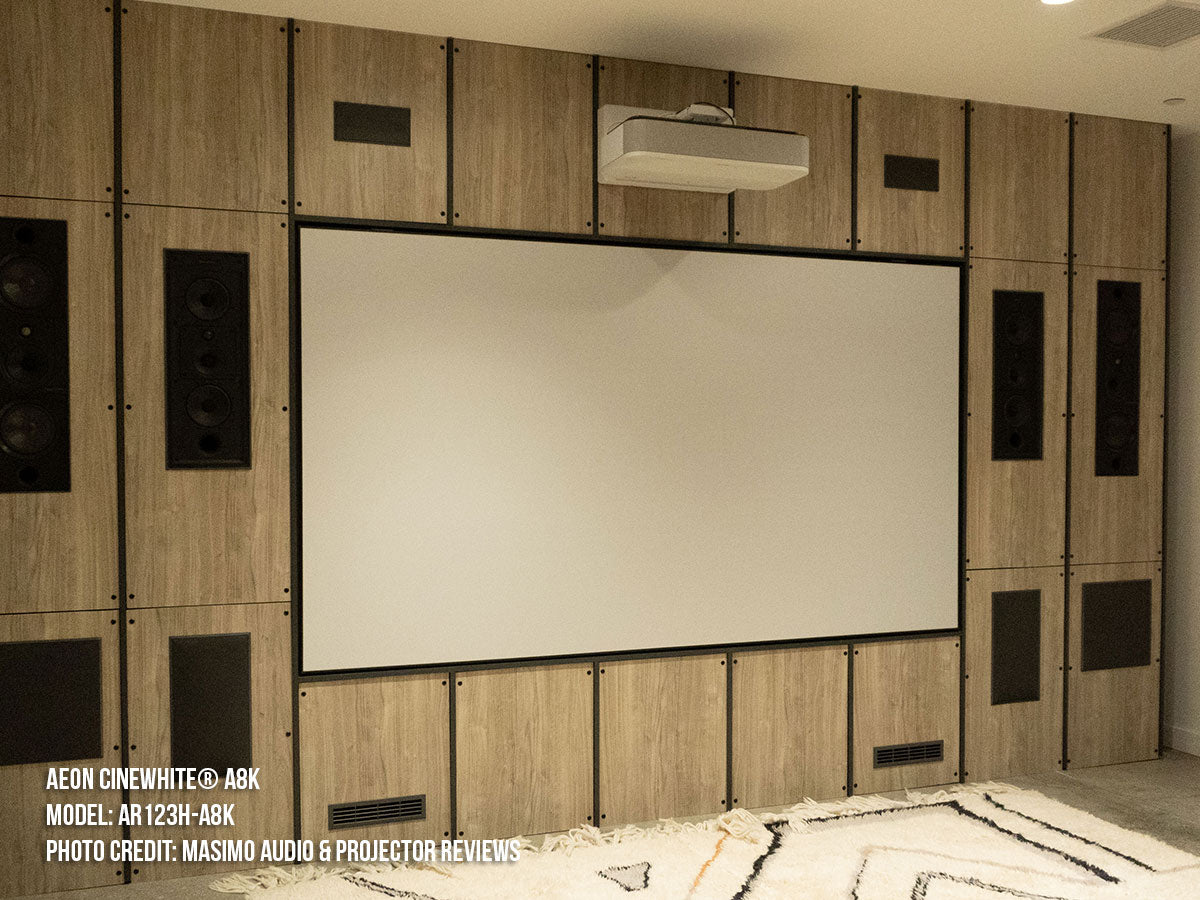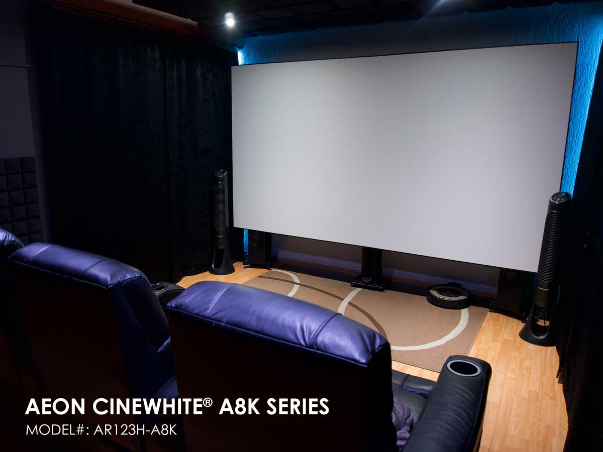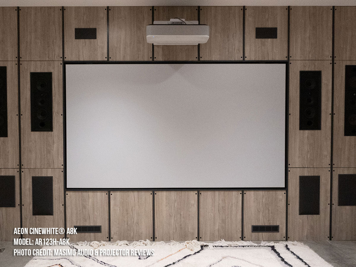 - Materiale per proiezione frontale acusticamente trasparente CineWhite® A8K