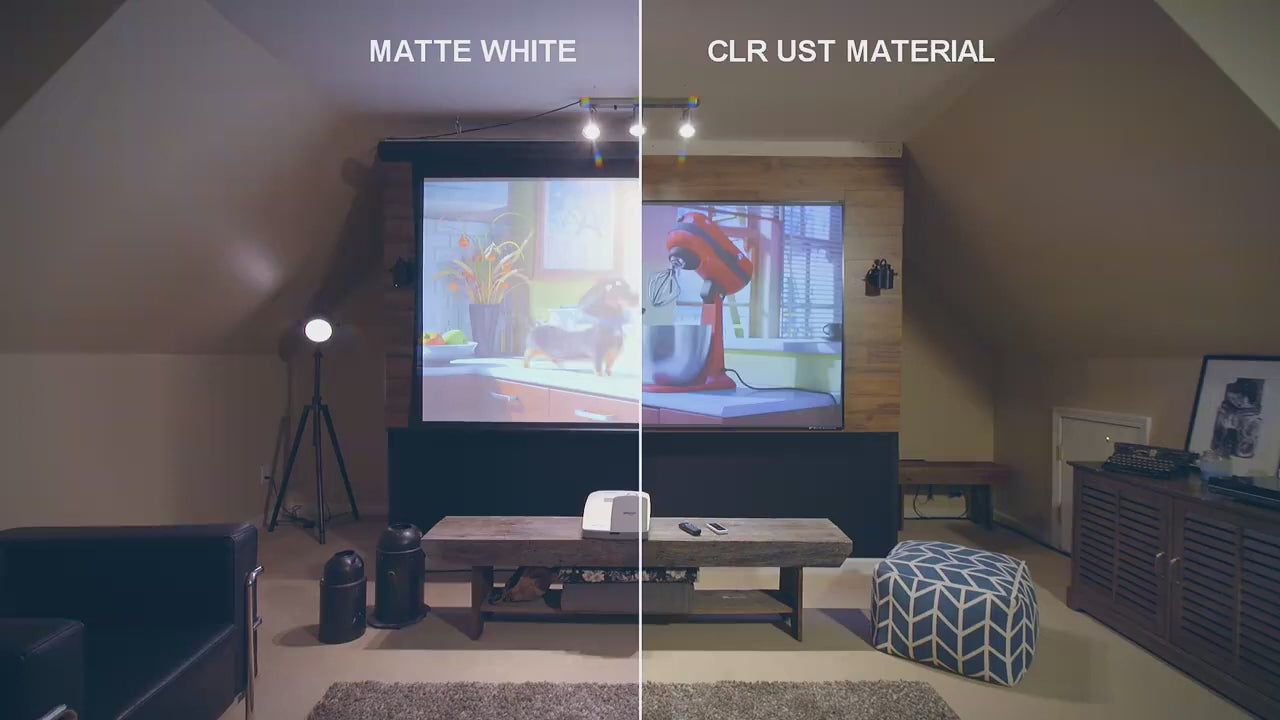StarBright CLR® è un materiale per la proiezione frontale che respinge la luce del soffitto, progettato specificamente per i proiettori a ottica ultracorta montati su tavolo, per offrire prestazioni da grande schermo negli spazi ristretti della maggior parte degli ambienti residenziali o addirittura di formazione. Offre un ampio angolo di visione, una temperatura del colore neutra e un maggiore contrasto dell'immagine in un'immagine di livello teatrale. StarBright CLR® è dotato di una struttura di lenti ottiche multistrato che assorbe la luce fuori asse proveniente dall'alto, fornendo al contempo un'immagine chiara. In questo modo, l'immagine proiettata non viene sbiadita.
